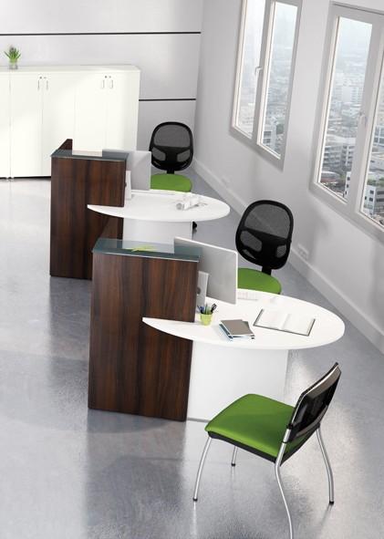Bureau d'accueil oval avec parties haute et basse - MDD - Blanc, Wengé, A droite -