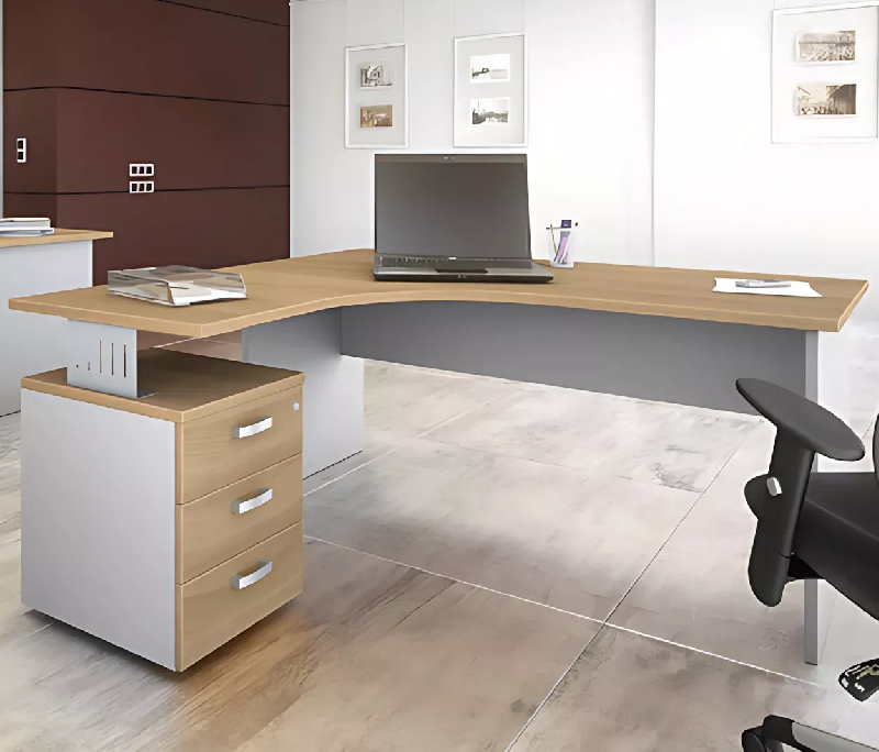 Bureau de Direction : faites preuve de style et de praticité avec ce bureau de direction compact et élégant. La forme arc et les designs intelligents vous permettent de profiter d'un espace de travail bien plus confortable. Pied panneau avec caisson de hauteur bureau offrant un espace supplément