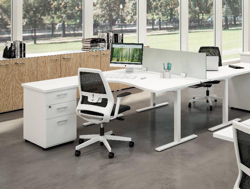 L'ensemble repose sur un piètement « T » en acier blanc apportant clarté et modernité à l'ensemble.