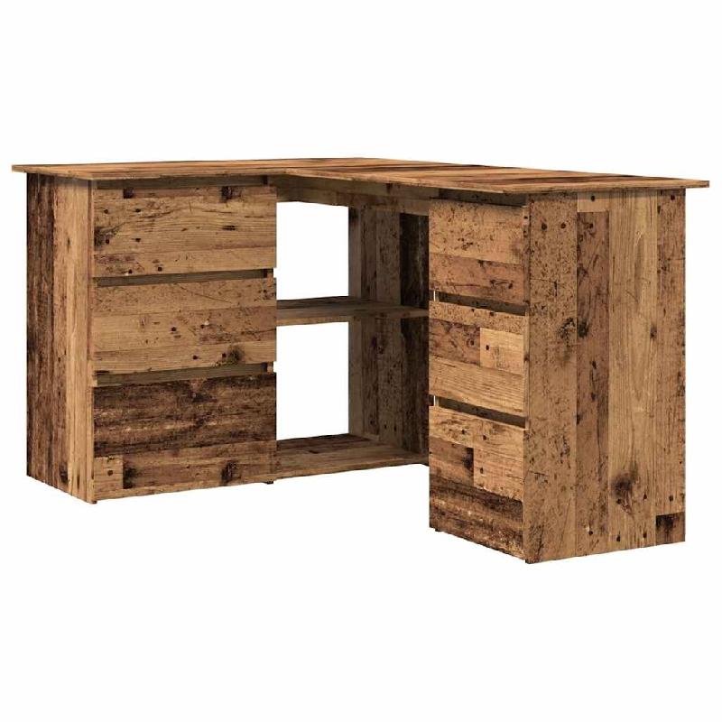 Bureau d'angle vieux bois 145x100x76 cm bois d'ingénierie Modèle Milan Urbain - 8721158434975