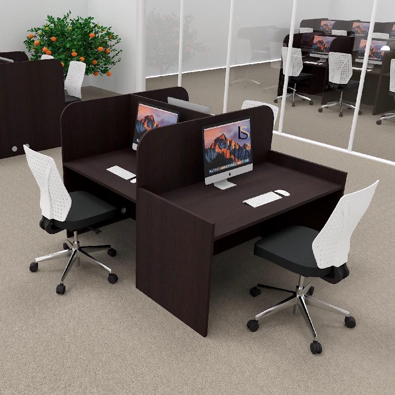 Bureau de call center version double 3 personnes avec poste pour superviseur. - 3 places, Wenge -