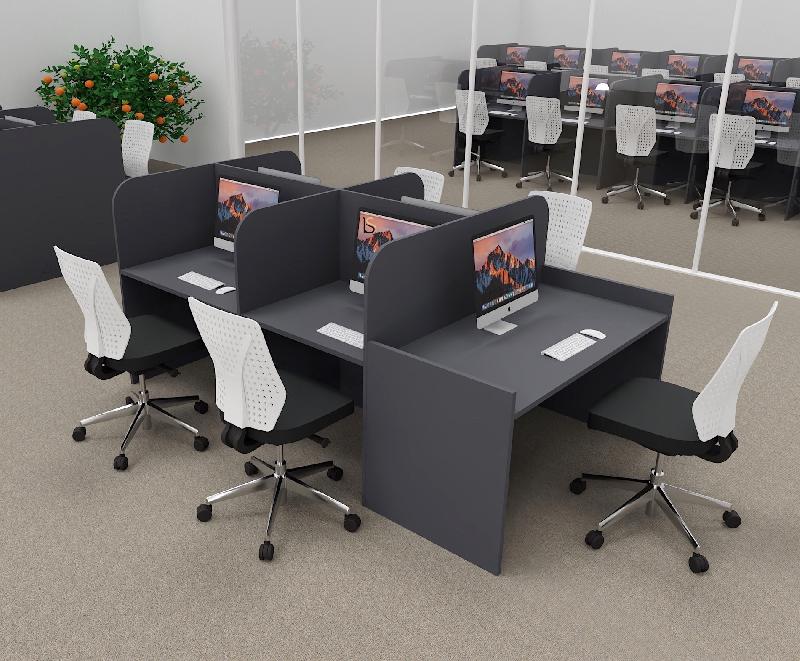 Les cloisons de séparation réalisées en mélaminé de 19 mm apportent confidentialité et concentration pour chaque utilisateur, une version avec panneaux acoustiques est également disponible, devis personnalisé sur simple demande.