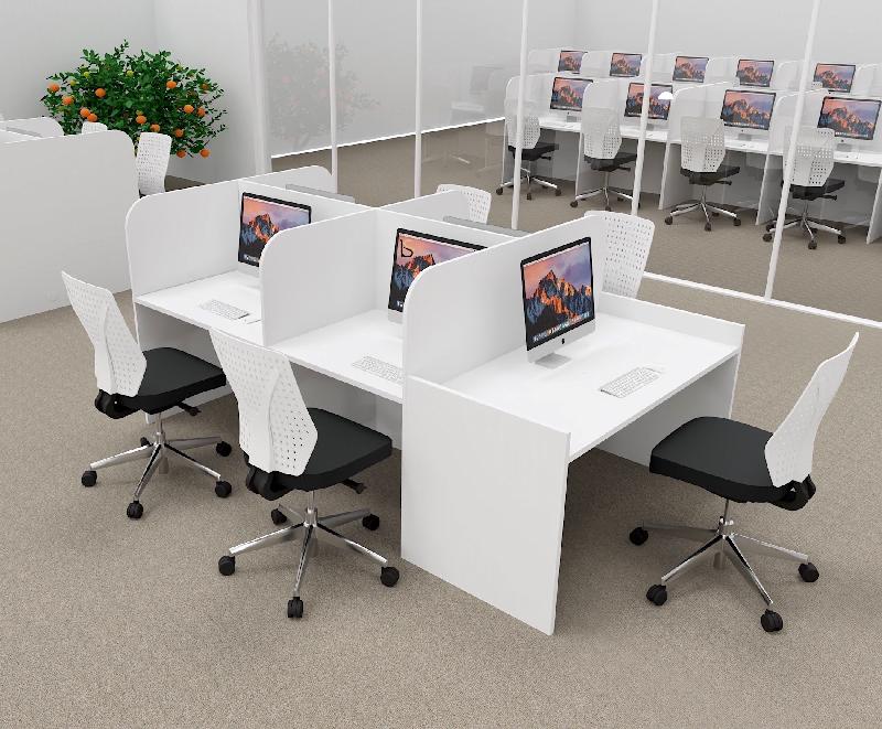 Les cloisons de séparation réalisées en mélaminé de 19 mm apportent confidentialité et concentration pour chaque utilisateur, une version avec panneaux acoustiques est également disponible, devis personnalisé sur simple demande.