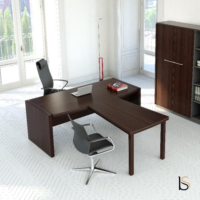 Le bureau de direction Status est disponible en 170 ou 200 cm de largeur pour 90 Ã 100 cm de profondeur ( forme courbe ).