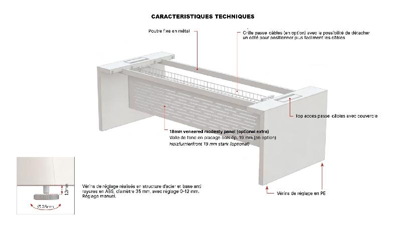 Pour finir, chaque piètement est équipé de 2 vérins de réglage et de stabilité pour garantir un confort de travail même si le sol présente des défauts.