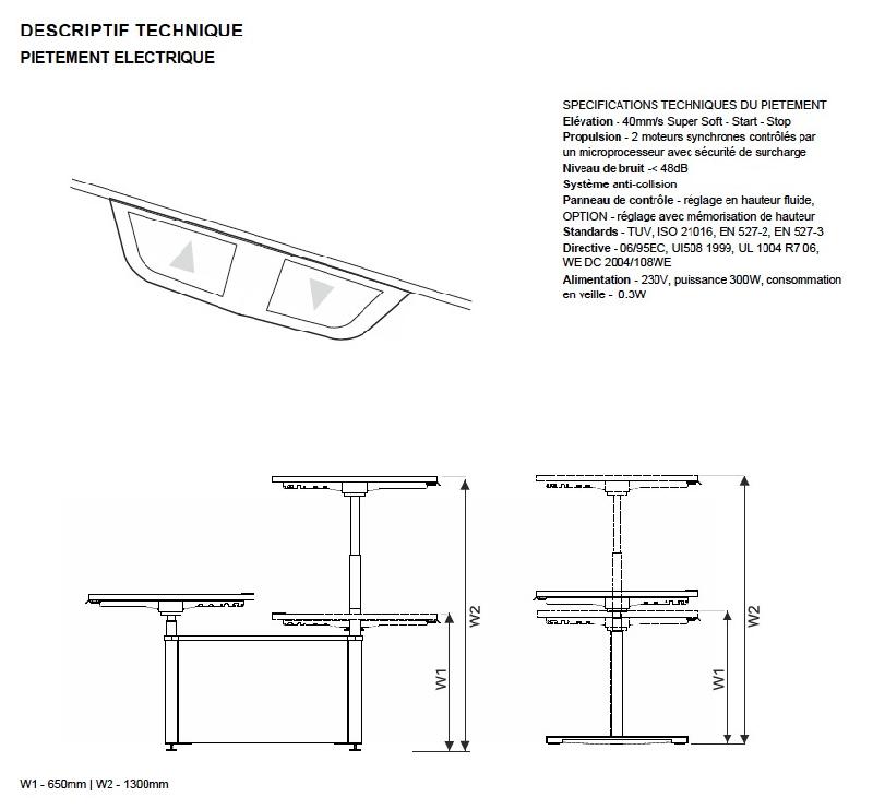 Le piètement électrique est prévu pour supporter une charge maximale de 100 Kg.