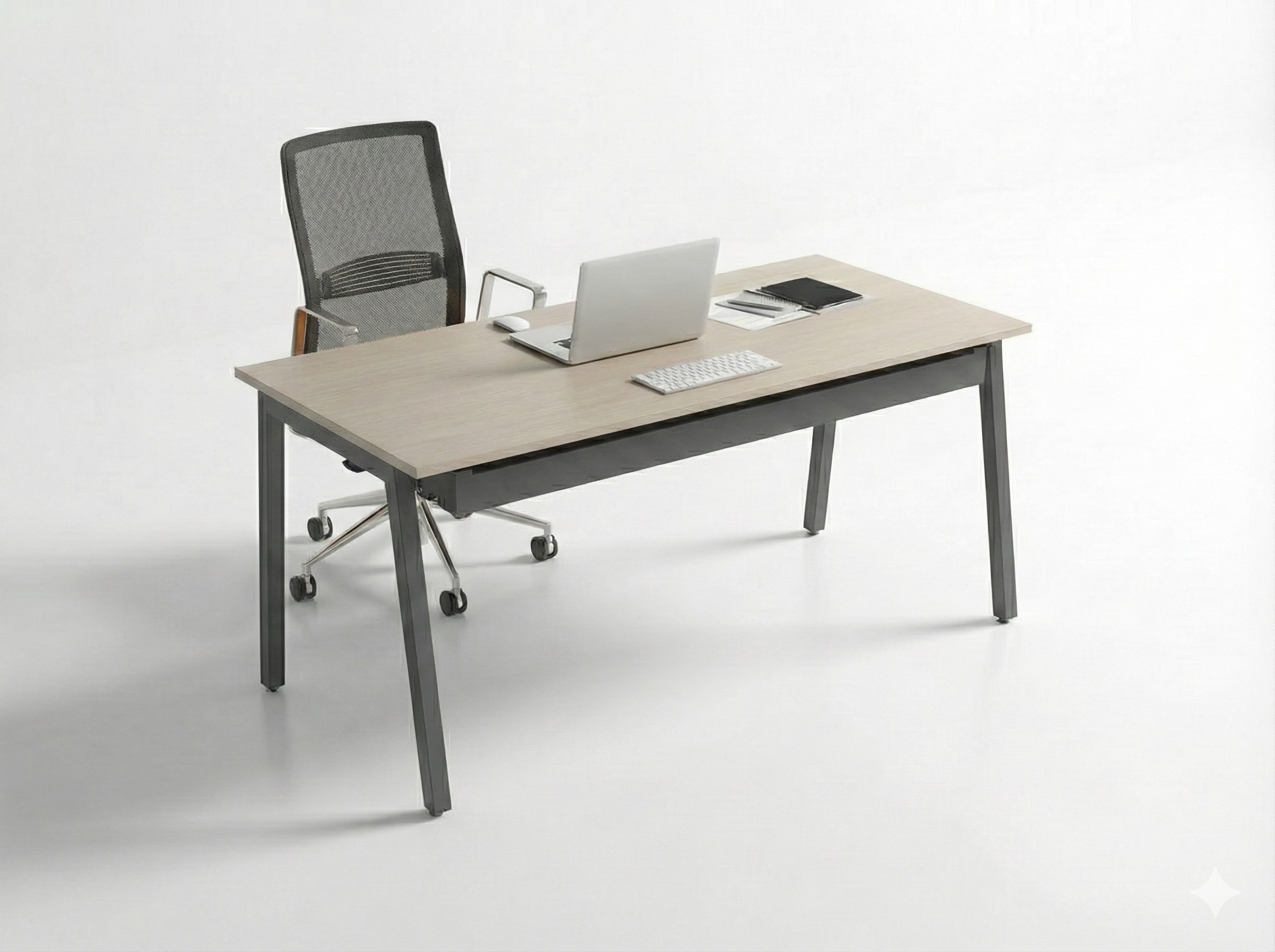 Bureau individuel Unity bois mélaminé. 4 dimensions disponibles L120/140/160/180 x P80 cm. 12 finitions de plateau, 4 coloris de pied. Voile de fond structurel. Garantie 3 ans. - Marque : MDD
