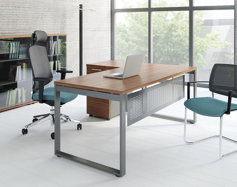 Son voile de fond en métal assorti au piètement habillera votre bureau tout en masquant la partie inférieure située sous le plateau.