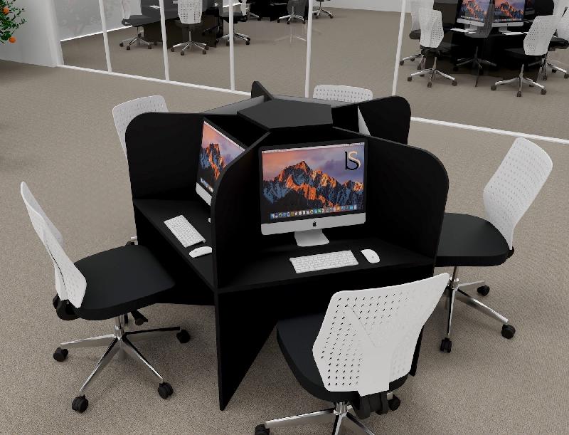 Bureau pour call center 5 places forme marguerite - noir -