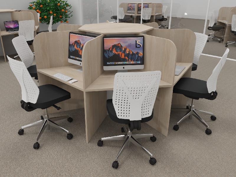 Bureau pour call center 7 places forme marguerite - acacia foncé