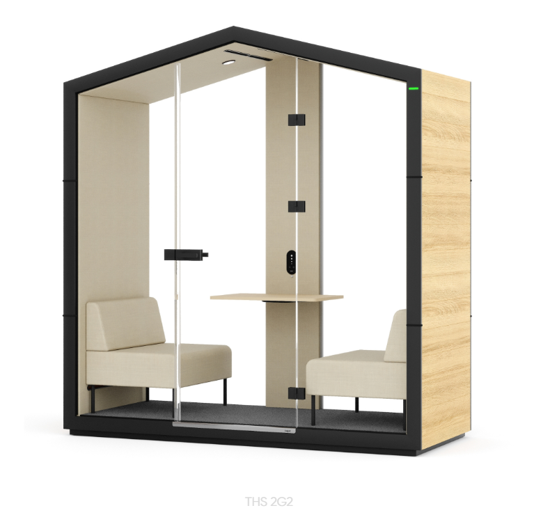 Cabine acoustique "TREEHOUSE" - 2 Places, 2 Parois vitrées, Aménagé (fauteuil, table, banc)