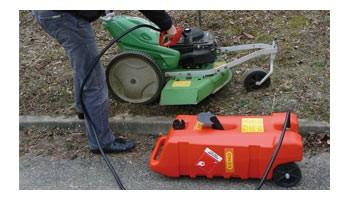 Caractéristiques - Longueur : 590 mm - Largeur : 430 mm - Hauteur : 1000 mm - Poids : 20 kg - Caddy ravitailleur PE avec pompe manuelle, volume 95 l - Homologué selon ADR (livré avec certificat d'homologation) pour le transport d'essence. - Caractéristiques - Roues gonflables tout terrai