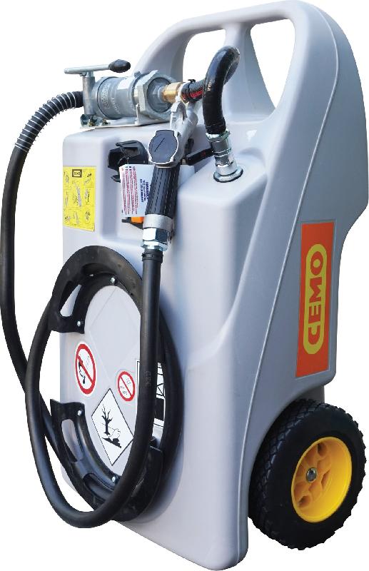 Caddy ravitailleur gasoil - Caractéristiques principales : - Pompe Centri SP30 12 V - Pistolet automatique - Fabrication : CEMO - Disponible avec ou sans batterie lithium - Capacité : - 60 ou 100 litres (au choix) - Équipement : - Cuve en polyéthylène - Dispositif de rangement du flex