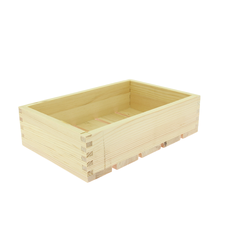 Cagette en pin Naturel de dimensions 30X20X8 cm. La cagette est assemblée en tenon mortaise et certifiée contact alimentaire.