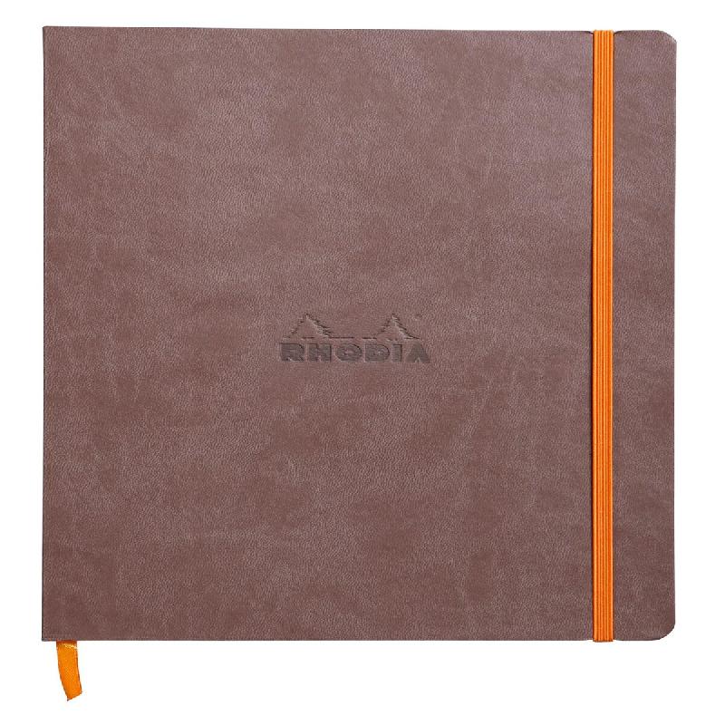 Couverture souple en simili cuir, dos carré collé, logo Rhodia embossé. Ruban marque-page. Pochette à soufflet en 3e de couverture. Elastique de fermeture.