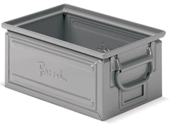 2202230 - Caisse métallique qualité vernie volume 8,7 litres en tôle d'acier 1ère qualité. Nervuration sur parois et fond pour charges importantes. Dimensions : H. 145 x L. 200 x P. 300 mm.Poids 2,3 kg.Points forts :> Dimensions norme Europe> Caisse gerbableDomaines d'utilisations : Pour le stockage de pièces lourdes en atelier, industrie et tous milieux professionnels.