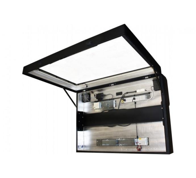 Caisson métallique de protection pour les écrans plats de type LCD, plasma. Il procure de série une protection IP 54 contre les poussières et l'eau.