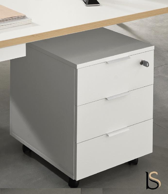 Ce caisson mobile en bois rappelle le design des bureaux Larus. Il comporte 3 tiroirs en PVC, extractibles à 90%. Il n'est pas équipé du système d'ouverture sélective des tiroirs. - Marque : Della Rovere