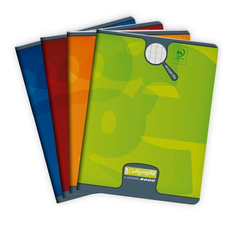 Calligraphe Lot de 10 Cahier Ligne 8000 17x22, 140p./70 feuilles 90 g/m² piquées, couv. Vernis UV, Séyès - 3210331087282