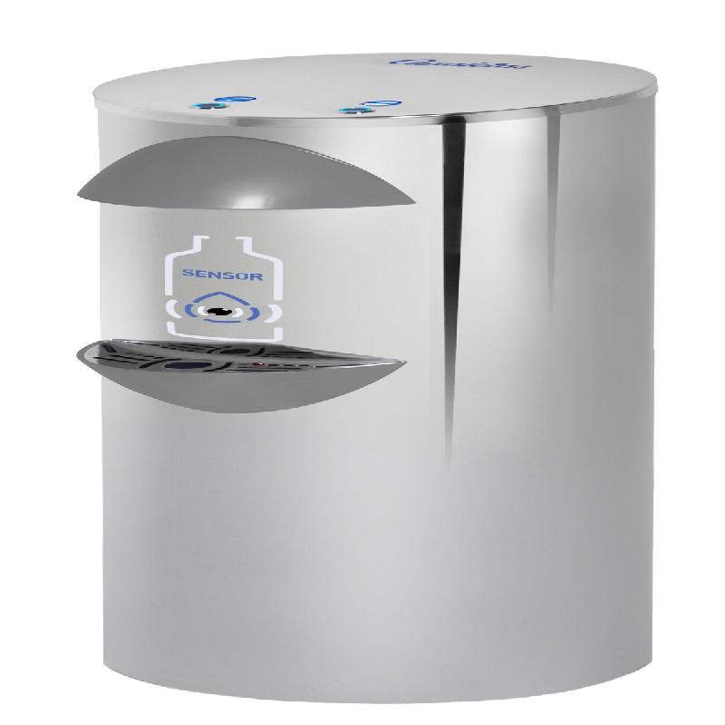 Design élégant pour cette fontaine à eau réseau Sans Contact (Hygiène et sécurité ) en acier inoxydable intérieur et extérieur. Détection de présence de bouteille. Pour remplir un récipient, il suffit de la placer face au capteur frontal et de sélectionner l'eau désirée (froide, tempérée ou mixte) en approchant le doigt du bouton ou en appuyant sur le bouton. Cuvette de récupération d'eau. Hygiène renforcée avec la protection occultant le jet de service : contact manuel évité. Détente directe (acier inoxydable), Thermostat permettant le réglage de la température de l'eau. Hauteur de niche de distribution d'eau de 33 cm. L'utilisation de filtre est recommandée pour une meilleure qualité de l'eau et pour assurer la perennité de l'eau. Porte-Gobelets en option.
