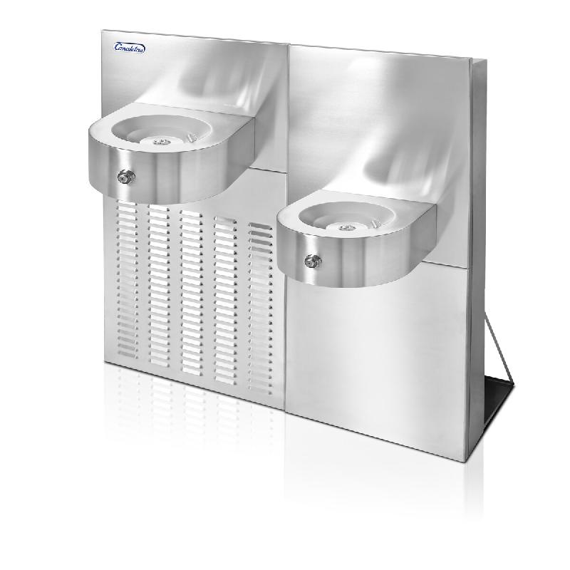 Fontaine réseau semi encastrable, murale.Eau froide. Système modulaire : plusieurs hauteurs de distribution : adultes, enfants, personnes à mobilité réduites. L'eau peut être transportée vers plusieurs fontaines à la fois. Intérieur et extérieur en acier inoxydable A316 avec protection hygiénique. Bouton frontal anti vandalisme et réglage de la hauteur du jet d'eau par le biais d'un robinet à membrane unique et extrêmement précis. Plateau profond anti éclaboussures. Panneau de ventilation amovible pour un meilleur accès lors de la maintenance. Réglage de la température aisé avec un thermostat. Possibilité de vider le groupe froid pour plus d'hygiène.