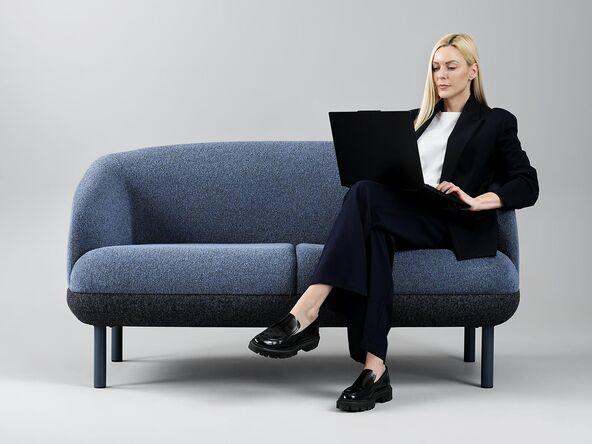 Canapé 2 places professionnel Alma de Dinavi, avec structure soignée, assise confortable, finition tissu bicolore et pieds métal thermolaqué. Existe aussi en version pieds bois.