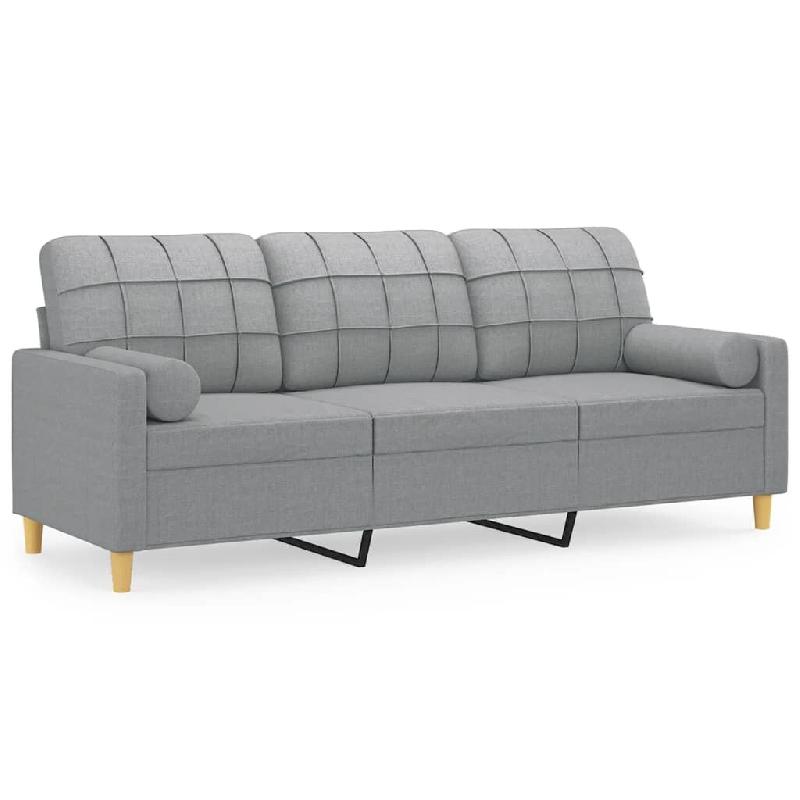 Canapé 3 places avec oreillers gris clair 180 cm tissu Modèle Castille - 8721012057579