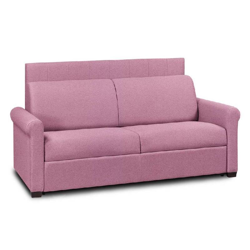 Canapé convertible 3 places Belle Époque - Velours rose - Ouverture CanapExpress, matelas memory 22 cm, tête de lit intégrée -