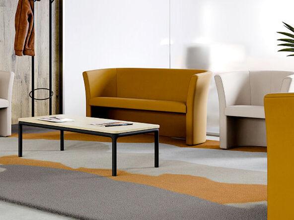 Fauteuil et canapé 2 ou 3 places en tissu pour attentes de standing, à prix doux. Lignes droites, design sobre et intemporel.  Traverse arrière finition époxy aluminium.  Coussins déhoussables.  Proposé en tissu STEP MELANGE M1 (autres finitions disponibles,merci de nous consulter)