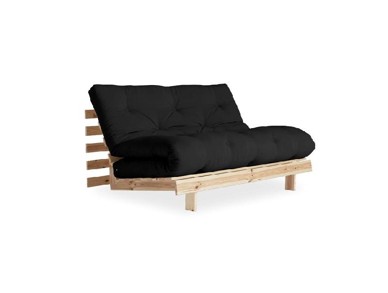 Canapé convertible futon ROOTS - Pin massif naturel - Coloris gris foncé - Couchage 140x200 cm -