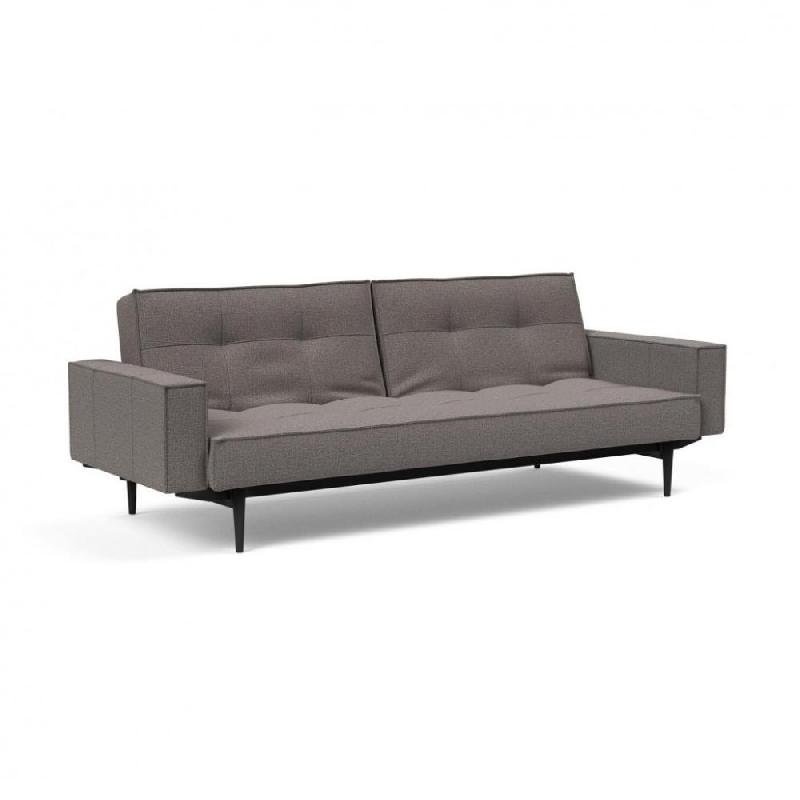 Canapé convertible Splitback Styletto avec accoudoirs - Pieds chêne noir - Tissu Mixed Dance Grey - Lit 115x210 cm -