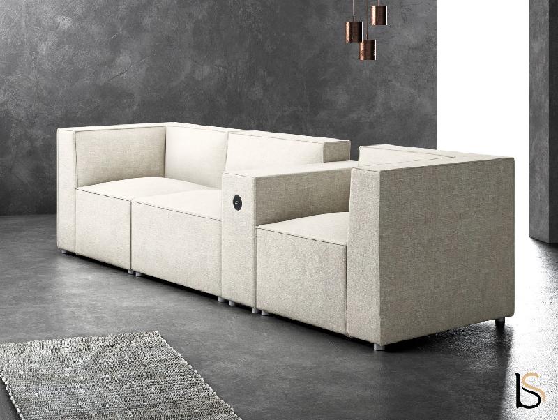 Cette composition offre trois accoudoirs dont un intermédiaire équipé d'une prise USB.