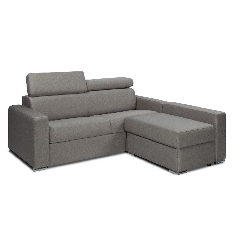 Canapé d'angle Sidney Compact Express - Sommier à lattes avec chauffeuse coffre - Tweed gris silex - Matelas 16 cm -