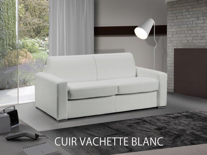 Canapé 3 places MASTER EXPRESS - Matelas 18 cm - Sommier à lattes RENATONISI - 180 cm - Cuir blanc cassé -