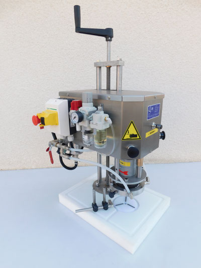 Machine semi - automatique en acier inox. - • Capsuleuse couronne Ø26mm ou Ø29mm - • Capsule à vis 28 x 15mm, 30 x 60mm, … - • Distribution manuelle des capsules.
