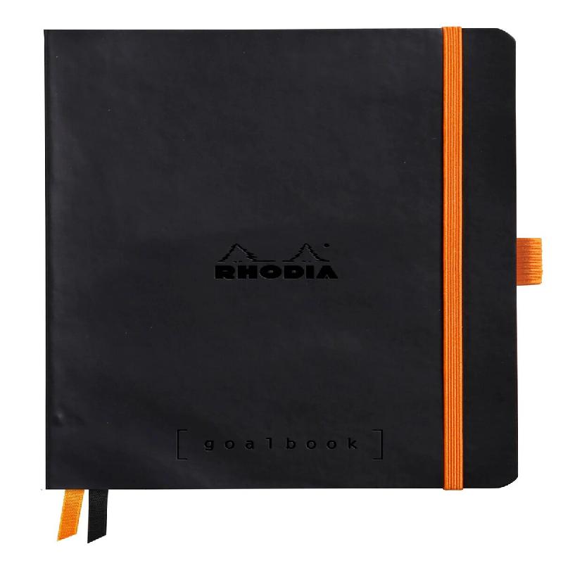 Couverture souple simili cuir italien, dos carré collé, logo Rhodia embossé, double ruban marque - page orange, pochette à soufflet orange, fermeture à élastique. Le goalbook est l'outil idéal pour organiser son quotidien, et ne rien oublier. Ultra - personnalisable grâce à ses 240 pages de