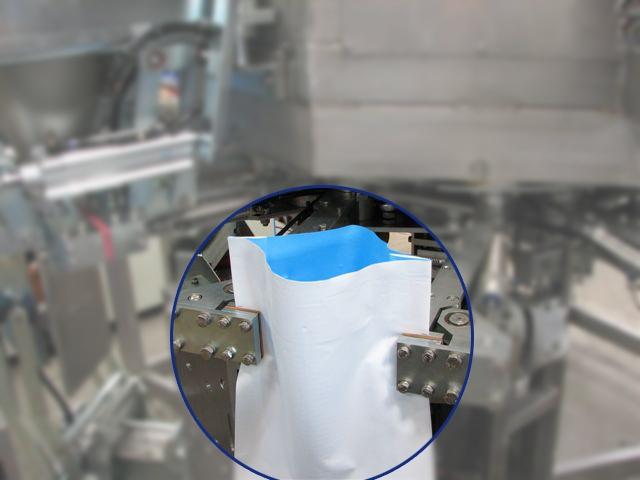 - Pinces mécaniques de prise et de maintien du sac : le sac est maintenu par les mêmes pinces de son ouverture (remplissage) jusqu’à sa fermeture