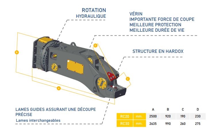 Conçus et fabriqués par la société TREVIBENNE, leader mondial des matériels de démolition. Cisaille acier pour les travaux ferroviaires, pour la découpe et l’élimination des voies ferrées et tramway. Il remplace le système onéreux traditionnel d’oxycoupage manuel.