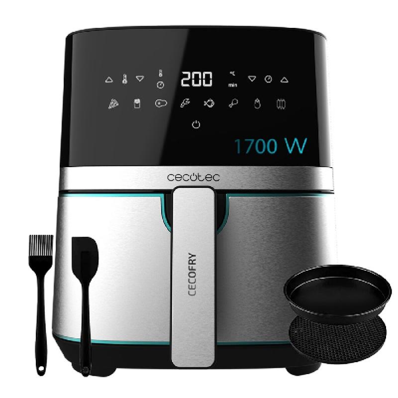 Des recettes irrésistibles sans attendre Le Cecofry Full Inox 5500 Pro a une puissance de 1700W pour une cuisson plus rapide, mais avec une consommation réduite. Pack d'accessoiresen silicone Profitez d'une grande polyvalence en cuisinant grâce à son pack d'accessoires en silicone qui vous permettra de réaliser une infinité de recettes de la manière la plus pratique et la plus efficace.