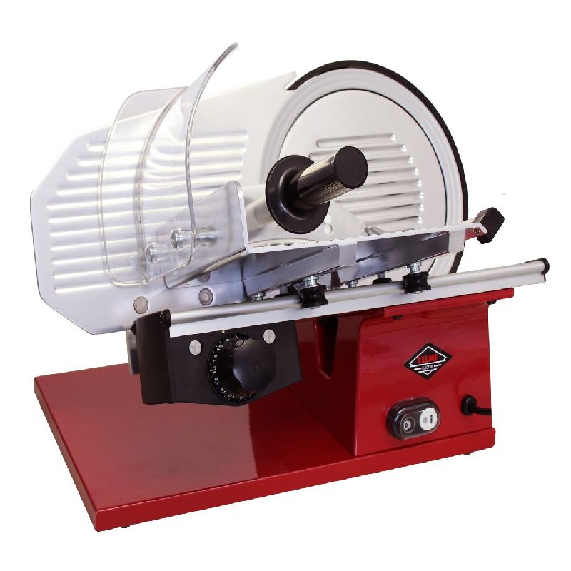 Trancheuse à jambon professionnelle 250 BKLR LUX Rouge - Cette trancheuse à jambon professionnelle avec sa lame de 250 mm est idéale pour la coupe de la petite et moyenne charcuterie. - Caractéristiques principales : - Moteur ventilé - Lame de 250 mm en acier trempé - Interrupteur double