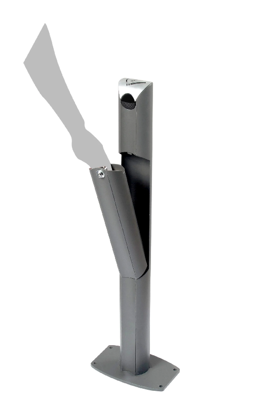 Cendrier extérieur en aluminium, à revêtement poudré résistant au feu et à tous les types de temps, conçu pour collecter les déchets des fumeurs dans les espaces publics. Il ne décolore pas grâce à la protection résistante aux UV. Il ne prend que peu de place, et est facile à vider : il