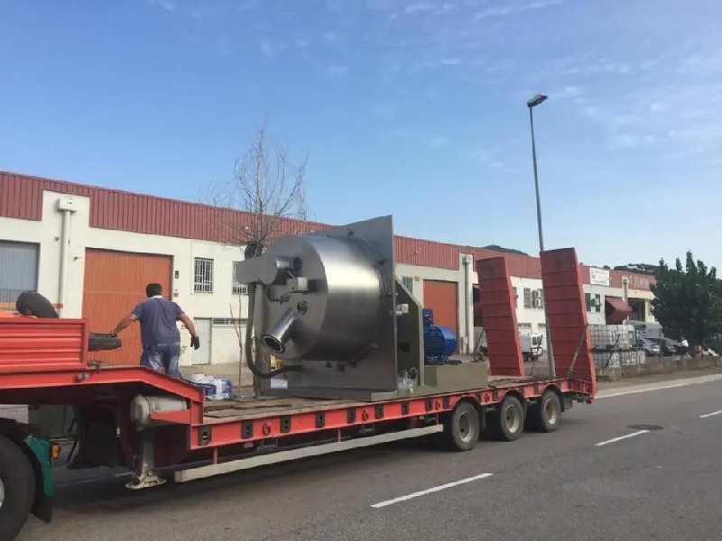 Centrifugeuse à panier à axe vertical à décharge manuelle par le haut montée sur plaque d'inertie avec silentblocs. Modèle SCA - 700 Toutes les pièces en contact avec le produit sont en acier inoxydable 316L (sauf les joints). Suspension : ressorts, rotules et tirants Couvercle : 6 verrous