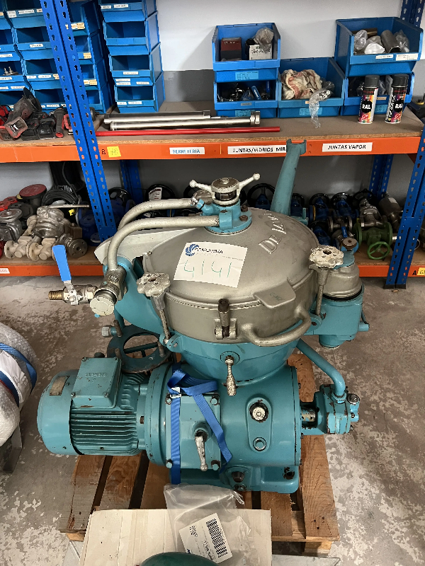 Centrifugeuse - auto - dessableuse Alfa Laval BRPX - 417 - SFV - 31CGL - 50. Acier inoxydable 316 (zones - de contact avec le produit), vitesse maximale du bol 4180 tr/min, conception de - clarificateur (séparation liquide/solide), décharge de liquide par pompe - centripète, cyclone à lisier