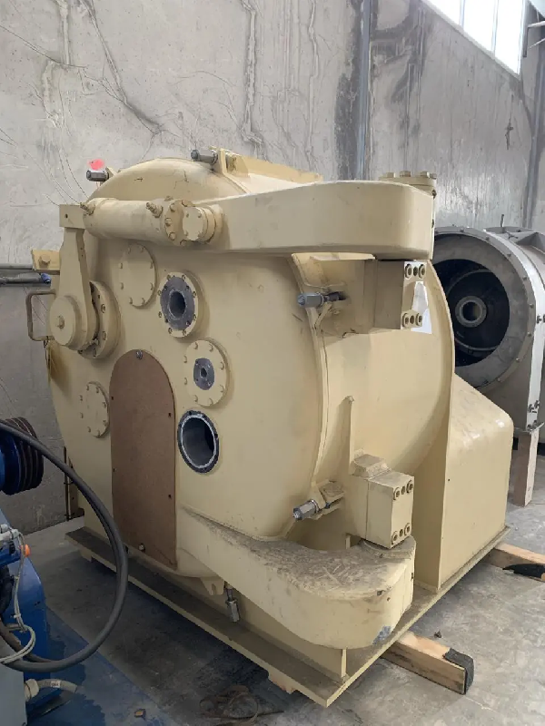 Centrifugeuse horizontale à panier fabriquée par KRAUSS MAFFEI, modèle HZ 125. - Matériel : - Acier inoxydable 316/316L - Caractéristiques techniques : - Modèle : HZ 125 - Vitesse maximale : 1220 rpm - Configuration de l'équipement : Racloir - Dimensions : - Diamètre du panier : 1250