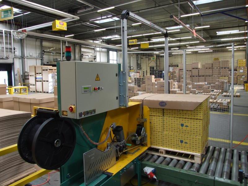Cette cercleuse de palettes automatique convient autant pour un projet complet de ligne d'emballage, que pour un projet de remplacement d'une cercleuse de palettes déjà existante dans une ligne d'emballage automatique.