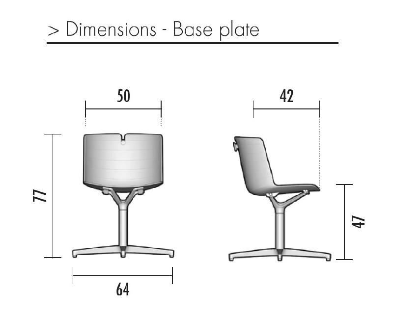L'assise coque en polypropylène repose sur un magnifique piètement croix en acier chromé avec patins de protection.