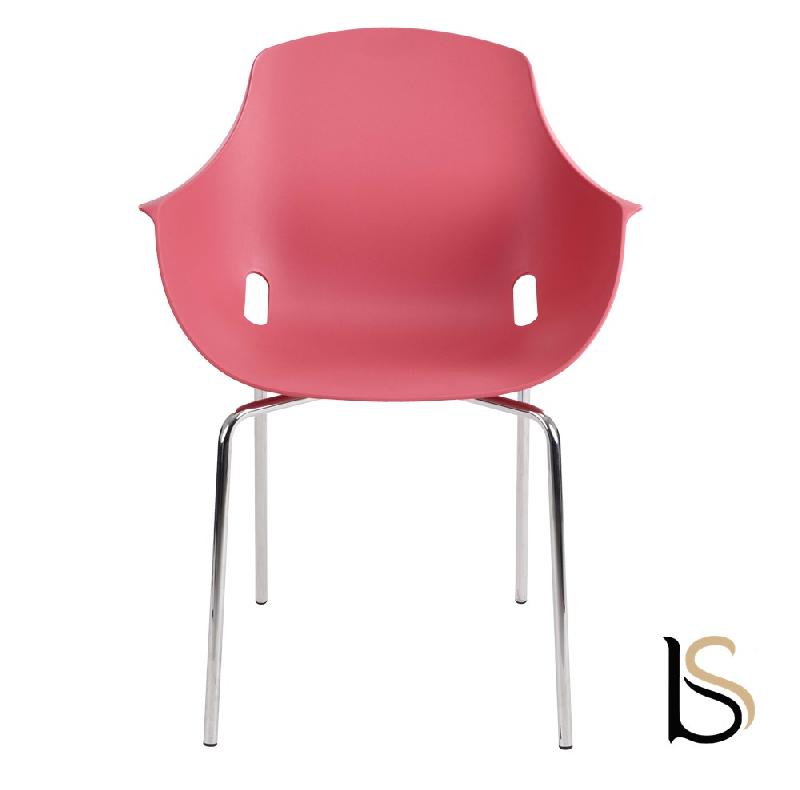 L'assise est réalisée en polypropylène disponible dans trois finitions, elle repose sur une structure en acier finition chromée équipée d'embouts de protection au sol.
