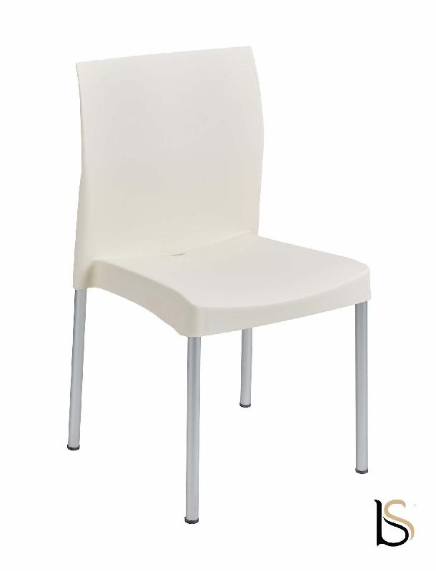 Chaise plastique blanche empilable de type Bistro pour l'intérieur et l'extérieur. Une housses de qualité adaptés pour cette chaise peut être acquise en option, lavage en machine et pas de repassage nécessaire.