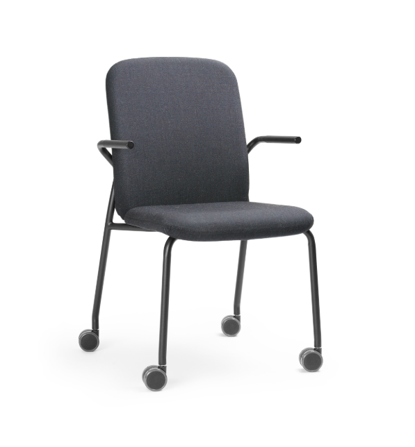 Chaise "HENS" - Assise fixe + Dossier haut, Roulettes, Avec