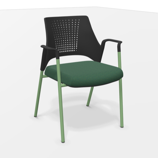 CHAISE LORE 4 PIEDS - Coque : en plastique entièrement tapissée avec accoudoirs, segment d'assise rembourré pour un confort supplémentaire - Piétement : métallique noir à quatre pieds